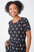 Petite Border Print Stretch Midi Dress from Roman. Add some pretty prints to your new season collection with this Petite border print midi dress. Cut from a comfortable stretch jersey fabric this piece features a modest round neckline and sweet short sleeves. An elasticated waist creates shape while the skirt falls in soft pleats to a modest length. Pair with a denim jacket & heeled wedges for effortless Summer style!