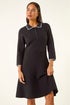 Petite Collared Knit Dress from Roman. Unleash your chic style with this collared knit dress, perfect for the Autumn/Winter season. The combination of a smart collar and button detailing elevates this knee length dress, while the 3/4 length sleeves add a touch of sophistication. The fit and flare silhouette ensures a flattering shape, making it a versatile piece for any occasion. Pair with tights and ankle boots for a trendy yet comfortable look that will take you from day to night effortlessly!