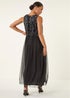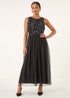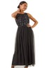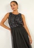 Roman Black Petite Contrast Sequin Mesh Dress
