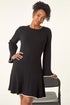 Petite Contrast Trim Knit Dress from Roman. Get ready to make a statement with this knit dress that exudes Autumn/Winter vibes. This short dress features a round neckline and long kimono sleeves, accentuated with a stunning knitted contrast colour trim hem detail. The fit and flare shape ensures a flattering silhouette while the comfy fabric keeps you warm and stylish. Pair with tights and heeled boots for a chic and trendy look that will turn heads wherever you go!