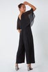 Learn morePetite Embellished Overlay Stretch Jumpsuit from Roman. The perfect, sophisticated alternative to a dress this Petite jumpsuit is occasion-ready! Cut from a soft, stretch jersey fabric this jumpsuit features a feminine v neckline and short chiffon sleeves. It has full length wide leg trousers and a stylish concealed back zip. A chiffon cape adorns the piece and is sprinkled with glittering embellishment that will sparkle on the dancefloor. Pair with heels and a clutch bag and you’re ready to go!