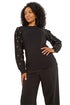 Roman Black Petite Faux Pearl Contrast Cable Knit Jumper