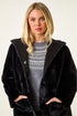 Roman Black Petite Faux Sheepskin Hooded Coat
