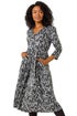 Petite Floral Print Button Up Midi Dress from Roman. Get ready to charm in our gorgeous Petite floral print dress. Showcasing a flattering fit and flare silhouette and a feminine v-neckline style, this dress exudes elegance. Featuring practical angled side pockets and front button-up details, this 3/4 length sleeve dress is perfect for the fall season. Designed in a comfortable stretch jersey fabric, this midi-length dress is ideal for layering with a denim jacket and boots for a trendy ensemble!