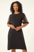 Petite Knitted Mesh Dress from Roman. Add a touch of elegance to your Autumn Winter wardrobe with our Petite stylish knitted mesh dress. Embrace the classic round neckline and short sleeves, crafted from a soft knitted fabric with contrast mesh details. Finishing at knee length, this dress offers a flattering fit for any occasion. Complete the look by pairing it with tights and ankle boots for a sophisticated outfit!