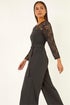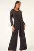Roman Black Petite Lace Contrast Stretch Jumpsuit
