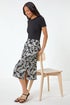 Roman Black Petite Leaf Print Linen Midi Skirt