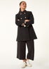 Petite Military Buttoned Coat from Roman. Get ready to conquer the colder seasons in style with this Petite military buttoned coat. Designed with a smart round neckline and stand collar, this coat is crafted from a comfortable woven fabric to keep you warm all day long. Finished with long sleeves, front button details, and side pockets for practicality. Pair with wide-leg trousers and ankle boots for a polished outfit!