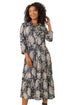 • Roman Black Petite Paisley Print Tiered Midi Dress
