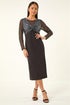 Roman Black Petite Sequin Contrast Knot Midi Dress