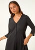 Roman Black Petite V-Neck Button Detail Stretch Dress
