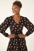 Polka Dot Stretch Midi Dress from Roman. Indulge in timeless elegance with this polka dot midi dress designed for the Autumn Winter season. Featuring a trendy v-neckline and flattering tie waist detail, this dress boasts a comfortable woven fabric with a charming polka dot print. The long sleeves offer warmth and a modest midi length. Complete your fall look with a denim jacket and ankle boots!