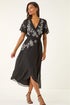 Premium Beaded Wrap Midi Dress from Roman. Shimmer and shine this Autumn Winter in our ultra-glamorous dress, designed to make a statement at any event. The feminine v-neckline and wrap over front complement the beaded details on the premium chiffon fabric. With essential side pockets and falling at a midi length, this dress is both practical and stylish. Complete the look with strapped heels and a trendy bolero!