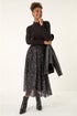 Printed Lace Overlay Skirt from Roman. Add a touch of elegance to your Autumn/Winter wardrobe with this beautiful printed lace overlay skirt. Designed with a comfortable elasticated waist, this skirt hits below the shin and is fully lined for added comfort. Perfect for any occasion, style with a chic blouse and heels for a sophisticated and stylish look.