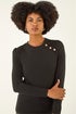 Ruched Button Stretch Top from Roman. Elevate your Autumn Winter wardrobe with this classic round neckline top. Designed with long sleeves and ruched shoulders with a chic button detail, this top combines style and comfort in a soft stretch jersey fabric. Pair with wide leg jeans and ankle boots for a sophisticated and stylish look that will take you from day to night effortlessly!