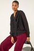 Ruffle Front V-Neck Blouse from Roman. Add a touch of elegance to your Autumn Winter wardrobe with this ruffle detail blouse. Featuring a feminine v-neckline with a stunning double ruffle front and long sleeves, this blouse is perfect for adding a touch of sophistication to any outfit. Crafted from a smooth woven fabric, it has delicate button through details and pleated frills for added charm. Pair with leather trousers and heeled boots for a stylish look!