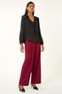 Satin Ruffle Neck Blouse from Roman. Make a statement in this satin ruffle top. Designed in a bright, on trend colour this top features a v neckline which is adorned with feminine frills. The ruffles join together and cascade down to the hemline creating movement and interest. Full length sleeves with elasticated ruffled cuffs add extra detail. Pair with leather look trousers and boots for an evening out with friends!