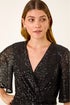 Roman Black Sequin Flutter Sleeve Stretch Jumpsuit