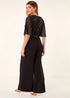 Roman Black Sequin Flutter Sleeve Stretch Jumpsuit