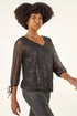 Roman Black Sequin Mesh Blouson Top