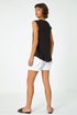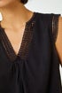 Learn moreSleeveless V-Neck Lace Trim Cotton Top from Roman. Crafted from a cool 100% cotton fabric, this sleeveless top is perfect for the warmer weather. Designed with a feminine v neckline, trimmed with intricate lace, this top has flattering pleats at the chest. Lace delicately trims the shoulders providing slight coverage on an otherwise sleeveless piece. Pair with denim shorts and sandals for the perfect Summer look!
