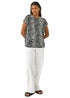 Learn moreGeo Print Bubble Hem Top from Roman. Add a touch of fun to your Spring Summer wardrobe with this striking geo print top. Crafted from a textured stretch jersey fabric, this tee-shaped top features a flattering round neckline and short sleeves. The elasticated bubble hem creates a stylish and comfortable finish, perfect for a relaxed yet sophisticated look when paired with linen trousers and sandals.
