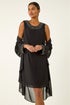 Sparkle Shift Dress & Shrug from Roman. Add a touch of sparkle to your Autumn/Winter wardrobe with this chic two-in-one chiffon shift dress and shrug. The dress is adorned with dazzling diamante embellishments, perfect for special occasions. The coordinating shrug adds a sophisticated layer and extra coverage, making it versatile for day or night. Complete the look with strappy heels for a glamorous ensemble.