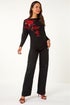 Sparkly Floral Knitted Jumper from Roman. Add a touch of glamour to your Autumn/Winter wardrobe with this stunning sequin floral knit. The classic black jumper features a vibrant red sequin floral detail across the chest, giving it a festive feel. Designed in the best selling batwing style, this jumper offers a comfortable and flattering fit with long sleeves for added warmth. Pair with tailored trousers and heels for a chic and stylish look that's perfect for any special occasion!