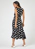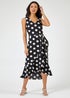 Roman Black Spot Print Frill Hem Wrap Midi Dress