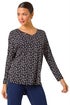 Spot Print Stretch Tunic Top from Roman. Welcome the autumn season in style with this chic long sleeve tunic. Designed with a flattering v-neckline and full-length sleeves, this tunic features a trendy drop shoulder silhouette and a pretty spot print throughout style making it perfect for everyday wear. Crafted from stretchy fabric, this piece is easy to move in and flattering. Pair with trousers for a laid-back daytime look that exudes effortless sophistication.