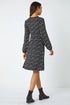 Roman Black Square Print Gathered Stretch Dress