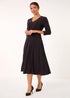 Stretch Crossover Midi Dress from Roman. Add some chic style to your Autumn/Winter wardrobe with this plain stretch midi dress. Featuring a flattering v-neck and 3/4 sleeves, the standout crossover detail at the waist adds a touch of elegance. Pair with boots and a jacket for a stylish and sophisticated look that will take you from day to night effortlessly.