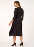 Roman Black Stretch Crossover Midi Dress