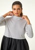 Stripe Print High Neck Smock Dress from Roman. Be a trendsetter in our striking stripe smock midi dress. Featuring a sophisticated high neckline and elegant long sleeves, this dress is perfect for the Autumn Winter season. The smock style ensures a comfortable and relaxed fit, making it a versatile piece for any occasion. Pair it with tights and boots for a stylish look that's sure to turn heads wherever you go!