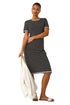 Learn moreStripe Print Knitted Dress from Roman. Add a touch of nautical chic to your Spring/Summer wardrobe with this stylish stripe knitted dress. Perfect for everyday wear, this dress features classic short sleeves, a flattering round neckline, and contrast binding at the cuff, neck and hem. The knee length offers a versatile silhouette that can be dressed up or down effortlessly. Complete your look with trainers and a light jacket for a casual yet trendy ensemble.