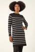 Stripe Print Knitted Jumper Dress from Roman. Step into the colder months in style with this cosy knitted Roman dress. Cut from a soft touch knit, this classic sweater dress has long sleeves, a round neck, ribbed cuffs and a classic stripe print throughout. Our casual dress is the ideal outfit for Autumn walks, pumpkin picking and Christmas markets this year. Keep warm in this relaxed fit style, perfectly paired with some thick tights and ankle boots for the Autumn Winter season.