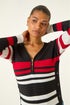 Roman Black Stripe Zip Front Ribbed Knit Jumper