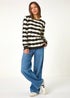 Striped Scallop Cotton Blend Tie Jumper from Roman. Step into Autumn Winter with a hint of nautical vibes in our modern stripe scallop jumper. The contrasting scallop design paired with a modest crew neckline and bow tie detail at the hem for a playful feel. Cut from a smooth cotton blend, this daywear knit features warm ribbed cuff sleeves. With its minimal design, this jumper exudes simplicity and style. Perfect for an Autumn walk, layer up with a jacket and denim jeans to beat the chill!