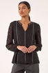 Studded Lace Notch Neck Top from Roman. Opt for a touch of elegance with this alluring lace detail top. Crafted from soft jersey stretch fabric, this stunning piece features intricate lace stud detailing, long sleeves, and a flattering notch neckline. The top finishes at the low hip, making it perfect to pair with jeans and ankle boots for a chic and sophisticated Autumn/Winter look.