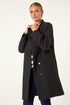 Roman Black Tailored Funnel Neck Pocket Detail Coat