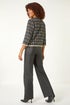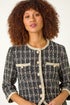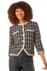 Textured Check Pocket Jacket from Roman. Get ready for the Autumn Winter season with our stylish textured check jacket. Crafted from a textured woven fabric with a contrasting check print, this jacket features a flattering round collarless neckline and 3/4 length sleeves. The edge-to-edge opening and front button details add sophistication, while the patch pockets are perfect for your essentials. Versatile for day or night, pair this trendy jacket with wide-leg trousers and ankle boots for a fashionable look!