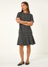 Textured Frill Hem Stretch Dress from Roman. Enhance your Autumn Winter wardrobe with our textured frill dress. The floaty knee-length dress features a classic round neckline and flattering short sleeves. The frill hem detail adds a signature look to the a-line shape. Cut from a woven stretchy fabric, this dress combines comfort with style. Pair with a denim jacket and jeggings for an effortless look.