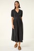 Textured Frill Midi Dress from Roman. Get ready to make a stylish statement in this textured frill detail midi dress! Featuring a flattering V-neck and short puff sleeves with cute gathered cuffs, this dress is perfect for Spring/Summer. Complete with button detailing and an elasticated waist in a flattering fit and flare shape. Pair this dress with sandals and a denim jacket for the ultimate chic and on-trend look!