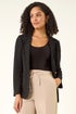 Textured Pocket Stretch Jacket from Roman. Add a touch of elegance to your wardrobe with this textured jacket. Featuring a classic blazer style, this piece is cut from a smooth stretch woven fabric and detailed with a flattering collar and revere. The front button opening and mock pockets add a smart touch, while the long sleeves complete the sophisticated look. Pair with trousers for a stylish and put-together outfit!