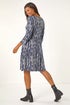 Tie Dye Button Detail V-Neck Dress from Roman. Add a touch of fun to your Autumn Winter closet with our glam tie-dye dress. Adorned with a playful print, this dress features a feminine v-neckline and practical front button details. The long sleeves and flattering knee-length finished in a fit and flare shape. Crafted from comfortable stretch jersey fabric, this dress is easy to wear. Style with a denim jacket and ankle boots for a complete fall look.