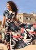 Roman Black Tropical Palm Shirred Waist Maxi Dress