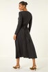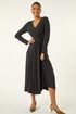 Twist Front Stretch Midi Dress from Roman. Elevate your Autumn Winter wardrobe with this twist front midi dress. Crafted from a comfortable stretch jersey fabric, this long sleeve dress features a classic v-neckline and a stylish twisted waist detail that flatters your figure effortlessly. Finishing at a midi length, this dress is perfect for any occasion. Pair with a denim jacket and ankle boots for a standout fall look that will turn heads wherever you go!