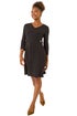V-Neck Buttoned Stretch Dress from Roman. Prepare to make a statement in this chic, knee-length dress perfect for the colder months. Featuring a feminine v-neckline and elegant 3/4 sleeves, this dress hugs your curves beautifully thanks to the comfortable stretch fabric. The gold button waist detail adds a touch of sophistication. Pair with a denim jacket and ankle boots for a stylish finishing touch!