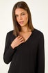 V-Neck Chiffon Hem Top from Roman. Add a touch of elegance to your Autumn/Winter wardrobe with this charming chiffon hem top. Featuring chic 3/4 sleeves and a flattering v-neck, this top is perfect for both casual outings and special occasions. The delicate chiffon hem adds a feminine touch, making it a versatile piece for day or night. Pair with your favourite jeans and ankle boots for an effortless yet stylish look!