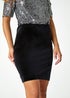 Roman Black Velvet Knee Length Pencil Skirt
